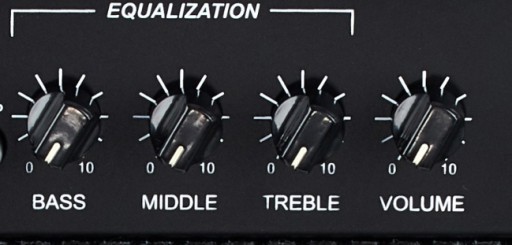- Equalizer: bass, środek, góra (3 potencjometry)