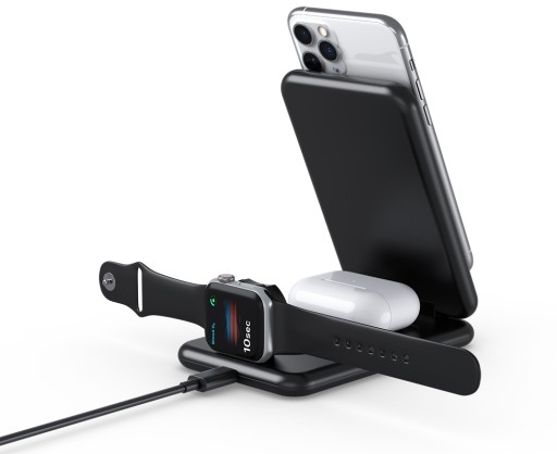 Zdobądź najnowszej generacji stację dokującą, która pozwoli na szybkie i bezpieczne naładowanie wszystkich Twoich urządzeń ulubionej marki Apple. Możesz swobodnie i szybko ładować, aż 3 urządzenia: telefon komórkowy, zegarek Apple Watch oraz słuchawki AirPods. Pozbądź się kabli z domu i zyskaj całkowitą niezależność oraz porządek na biurku.