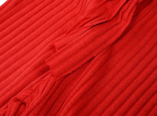 Charakterystyka materiału: miękki, delikatnie rozciągliwy, cieńszy, przypomina dzianinę, wzór prążkowany