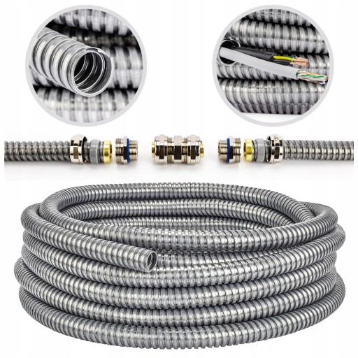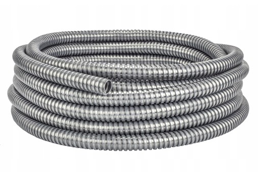 Wytrzymały, elastyczny, uniwersalny peszel karbowany wykonany ze stali galwanizowanej.