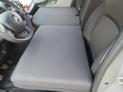 Rozkładane łóżko na przednie fotele samochodów dostawczych. Idealnie dopasowane do deski rozdzielczej, skrojone na wymiar, maksymalnie szerokie i długie, wymiary różnią się w zależności od marki auta.
