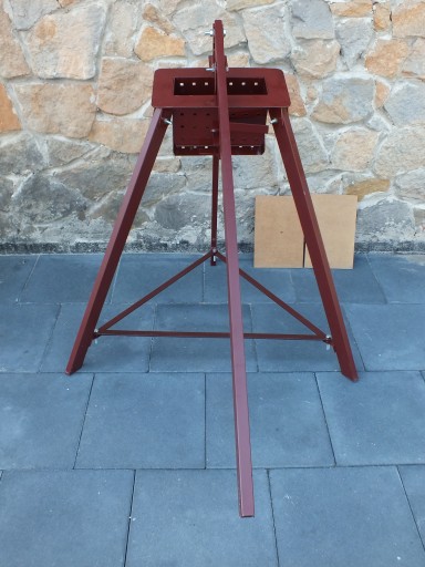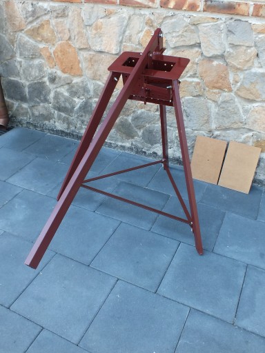 Konstrukcja brykieciarki wykonana została z profilu 5x2cm o grubości 2mm oraz blachy 3mm, zabezpieczona farbą koloru brązowego.