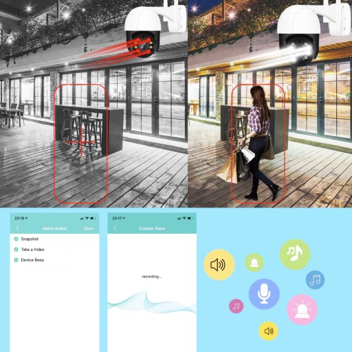 Kamera posiada wbudowany głośnik i mikrofon, zapewnia możliwość dwukierunkowej komunikacji głosowej, dzięki czemu osoba znajdująca się na nagrywanym obiekcie może usłyszeć wydawane polecenia przez np. właściciela posesji.
