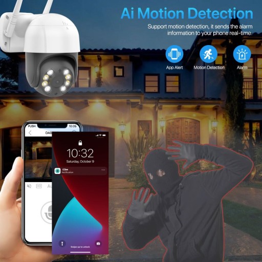 Chroń swój dom, jeśli wykryty zostanie ruch, powiadomienie o alarmie zostanie szybko przesłane do telefonu.