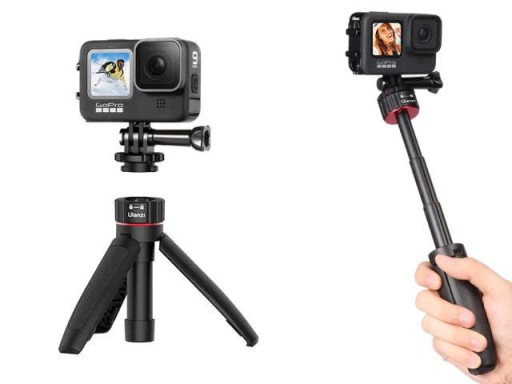 Uchwyt od Ulanzi to urządzenie 2w1 które świetnie sprawdzi się w podróży. Kijek może posłużyć jako Selfie Stick do kamery sportowej lub po rozłożeniu nóżek jako statyw.