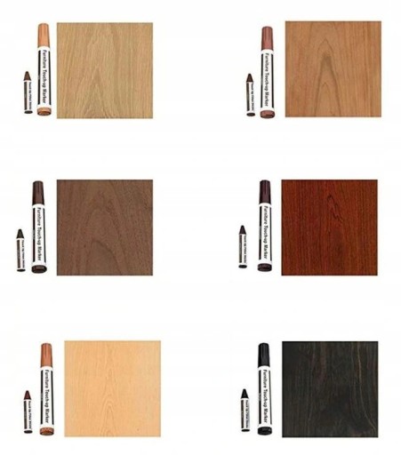 Naprawa następuje poprzez wypełnienie głębszego ubytku woskiem, oraz dorysowanie struktury drewna odpowiednim kolorem markera.