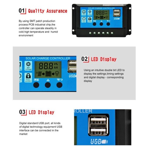 60A LCD PWM Solar Panel Battery Regulator Charge Controller Dual USB