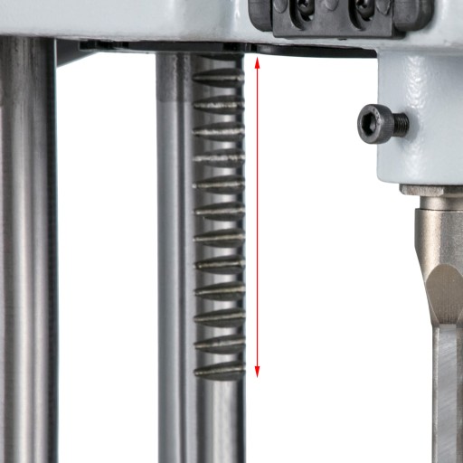 Ta maszyna do wpuszczania i czopowania ma regulowane stojaki do szybkiej regulacji limitu głębokości w celu uzyskania jednolitej głębokości wpustu, którą można wcisnąć do 3 ”/76 mm.