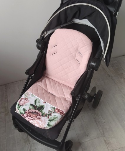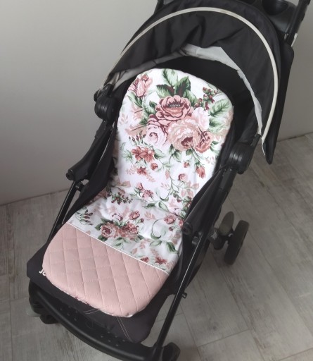 - wkładkę do wózka spacerówki ROSE w kolorze pikowany brudny róż + kwiaty róże cygańskie pudrowy róż. Rozmiar S 80 cm.