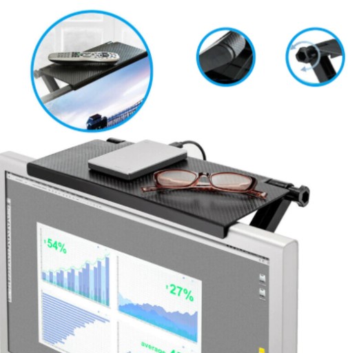 W pełni wykorzystaj przestrzeń nad ekranem do przechowywania. Składana półka pomoże zapanować nad dużą ilością pilotów w mieszkaniu lub w biurze.