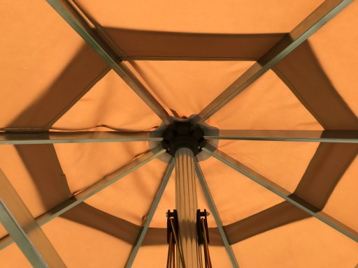 Parasol ogrodowy posiada tzn. komin, wywietrznik, który umożliwia uchodzenie nadmiaru powietrza gromadzącego się pod powierzchnią poszycia.