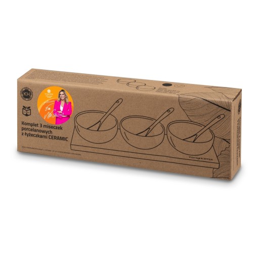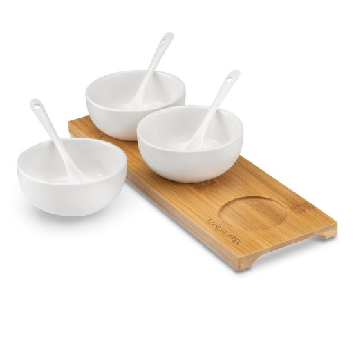 Pozostałe informacje: - miseczki z porcelany NBC, wykończenie: mat, - łyżeczki z porcelany NBC, wykończenie: połysk, - deska bambusowa, - elementy porcelanowe można myć w zmywarce, - deska bambusowa wyłącznie do mycia ręcznego