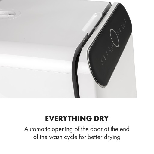 Dzięki sześciu różnym programom - ekonomiczny, intensywne zmywanie, czyszczenie szkła, program 58-minutowy, program szybkiego zmywania i tryb samooczyszczania - zmywarka Oceana marki Klarstein zapewnia efektywny wybór dla różnych poziomów zabrudzenia i wymagań co do wydajności, od lekko zabrudzonych szklanek i filiżanek po inkrustowane talerze po spaghetti lub garnki. Tryb intensywny nadaje się zwłaszcza do silnych zabrudzeń, a tryb szybki do zabrudzeń lekkich. Wyjątkowo energooszczędny program ekonomiczny zmywa naczynia w niskich temperaturach, oszczędzając w ten sposób energię. Cechą szczególną jest automatyczne otwieranie przedniej klapy po zakończeniu procesu zmywania, dzięki czemu para wodna może się ulotnić, a naczynia wysychają wyjątkowo szybko i są od razu gotowe do włożenia do szafki.