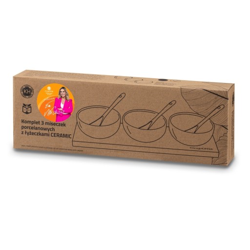 Błyszczące miseczki do dipów na desce bambusowej z 3 łyżeczkami Konighoffer 3 x 150 ml wykonano z białej porcelany NBC. Nadają się również do podawania sosów do pizzy, zakąsek oraz przekąsek. Komplet wykorzystasz na przyjęciu lub ułatwisz sobie organizację wieczoru filmowego. Łyżeczki porcelanowe i miseczki umyjesz bezpiecznie w zmywarce. Stabilnie przeniesiesz zestaw na desce z drewna bambusowego, która ma wgłębienia na miseczki. Wymiary deski to 28 x 9 x 1,2 cm. Wszystkie elementy zostały wykonane precyzyjnie. Ich wysoka jakość produkcji przekłada się na wieloletnie użytkowanie oraz bezpieczeństwo w kontakcie z żywnością. Produkt ma rekomendację Ewy Wachowicz. Jako ambasadorka marki Konighoffer, gorąco i z uśmiechem poleca go ona do domowego użytku. Razem z nim zdobędziesz twój przepis na dom. To jedna z najlepszych opcji w tej kategorii!