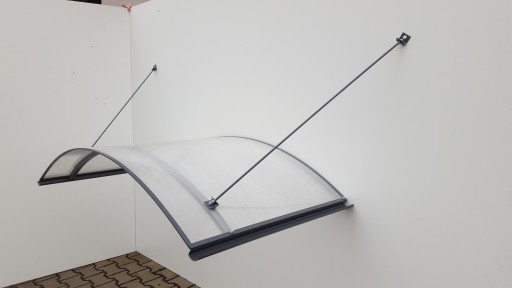 Zadaszenie na odciągach, posiada uszczelkę przyścienną i 2 boczne rynienki.
