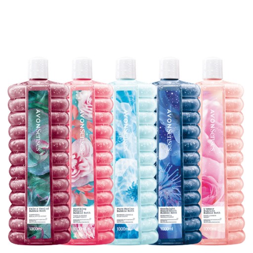 Zestaw 5 płynów do kąpieli Avon to więcej miękkiej, bogatej piany i odprężenia podczas relaksu w wannie pełnej ciepłej wody.