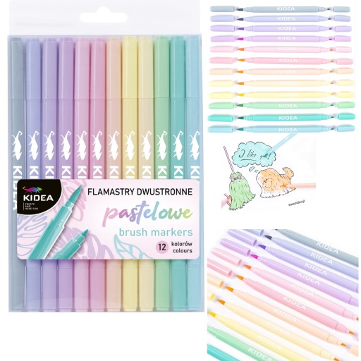 FLAMASTRY PISAKI DWUSTRONNE PASTELOWE 12 KOL KIDEA