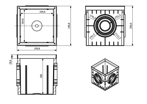 Studzienka gruntowa, kontrolno-pomiarowa, mała - 20x20 cm, RAL 7035 - szara.
