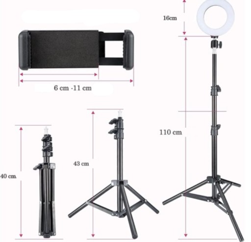LAMPA PIERŚCIENIOWA LED SELFIE STATYWA 43-110cm