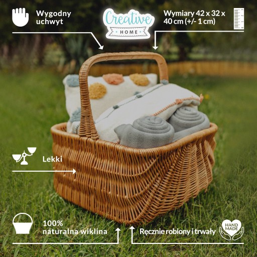 DOSKONAŁA JAKOŚĆ - Kosz holenderski Creative Home jest wykonany ręcznie w 100% z naturalnej wikliny, która jest trwała i odporna. Dodatkowo, niewielka waga kosza oraz jego uchwyt sprawiają, że jego przenoszenie jest bardzo wygodne.
