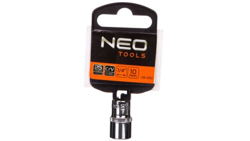 ✅Nasadka sześciokątna 1/4" 10 mm NEO (nr ref. 08-450) wykonana z wytrzymałej stali chromowo-wanadowej.