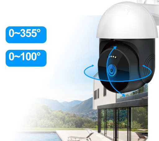 Kamera może obracać się od 0° do 355° w poziomie oraz od 0° do 100° w pionie.