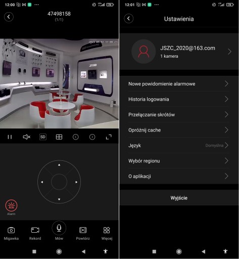 Aplikacja działa w technologii P2P (kamera wysyła obraz do serwera producenta, a następnie na telefon).