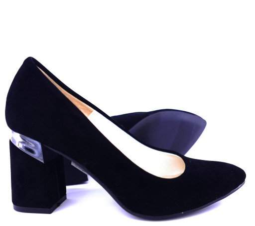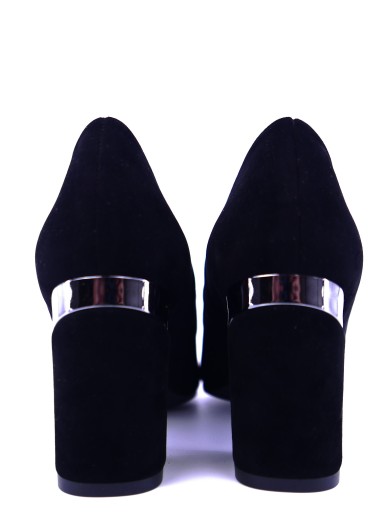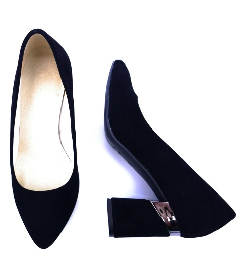 CZARNE ZAMSZOWE CZÓŁENKA Z EFEKTOWNYM METALICZNYM OBCASEM