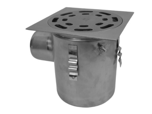 Wpust podłogowy ze stali nierdzewnej z odpływem bocznym DN100.