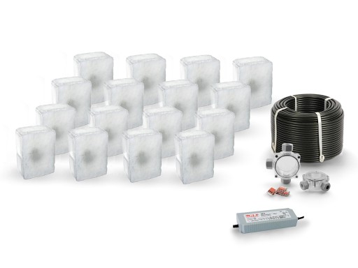 ZAWARTOŚĆ ZESTAWU: 16x LedColor AKROPOL 14x10; 1x Zasilacz LED; 50mb x Przewód ziemny