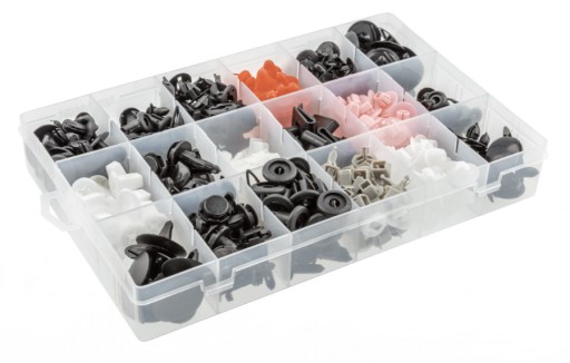Spinki samochodowe stosowane przy pracach wykończeniowych w samochodach marki Lexus i Toyota.