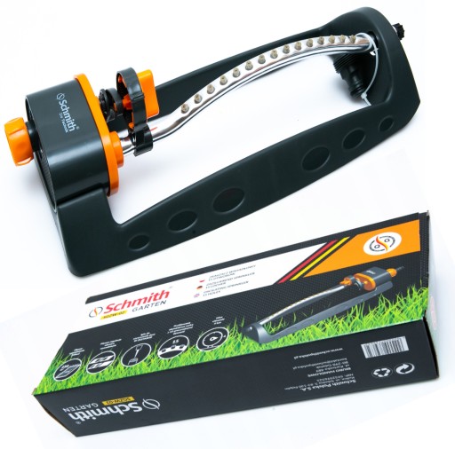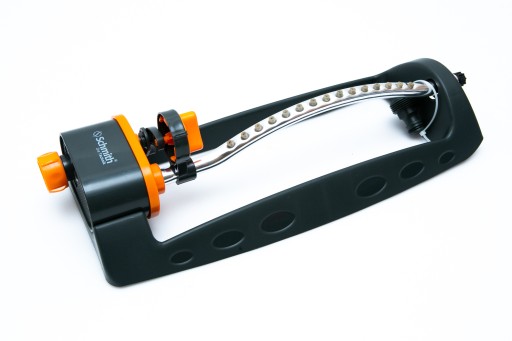 Zraszacz wahadłowy z 15 otworami nawadniającymi. Zapewnia równomierne i delikatne nawadnianie poprzez precyzyjne giętkie dysze osadzone w aluminiowej rurce. Reszta konstrukcji wykonana z odpornego na wstrząsy plastiku.