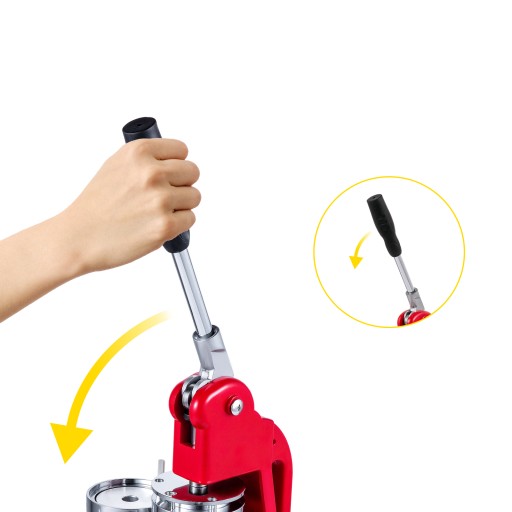 Rękojeść oszczędzająca pracę: Rękojeść maszyny do robienia guzików została zaprojektowana z naciskiem na ergonomię. Zapewnia wygodny chwyt. Co więcej, antypoślizgowa guma na górze rękojeści zapobiega wypadkom.