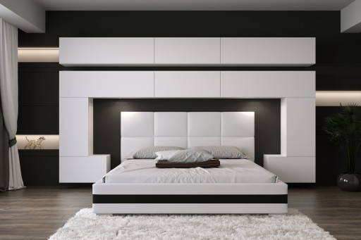 Meblościanki w zabudowie do sypialni Panama, które przygotowaliśmy dla Ciebie zaskakują nie tylko nowoczesnym wyglądem. Bez wątpienia odznaczają się funkcjonalnością, estetyką i precyzją wykonania. Dostępne w wielu kombinacjach i rozmiarach. Pamiętając o zróżnicowanych potrzebach rynku nasze meblościanki zaprojektowaliśmy tak aby pasowały do każdego rozmiaru łóżka. Oświetlenie LED jako opcja dodatkowa może zostać umieszczone w dowolnym miejscu na regałach. Opcją dodatkową jest również łóżko, dla tych z Was, którzy nie tylko szukają pięknych mebli, które zaoszczędzą mnóstwo miejsca ale również dla tych, którzy chętnie skorzystają z całego możliwego asortymentu.