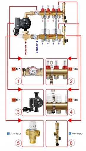 ROZDZIELACZ 2 OBWODY DO OGRZEWANIA PODŁOGOWEGO Z ZESTAWEM MIESZAJĄCYM Z ENERGOOSZCZĘDNĄ POMPĄ ASTIBI