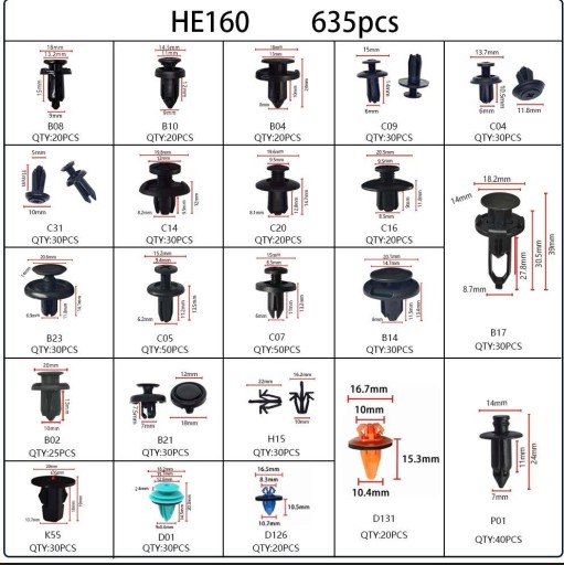 НАБОР УНИВЕРСАЛЬНЫХ АВТОМОБИЛЬНЫХ ЗАЖИМОВ 635 ШТ.