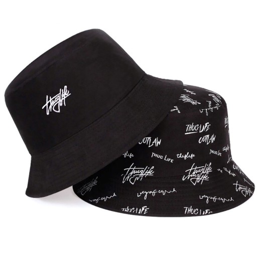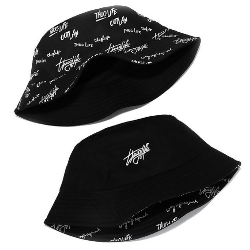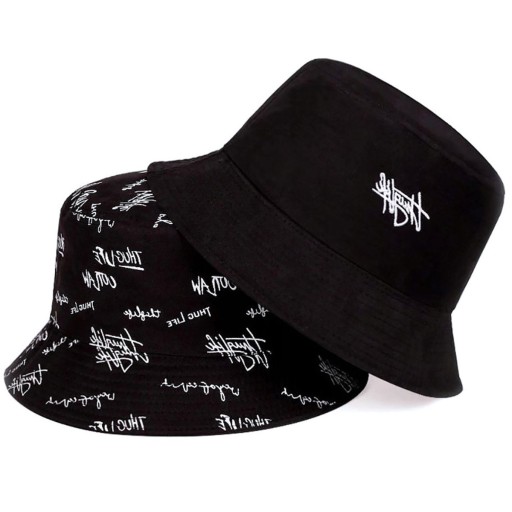 BUCKET HAT czapka dwustronna KAPELUSZ RYBACKI czarny napis