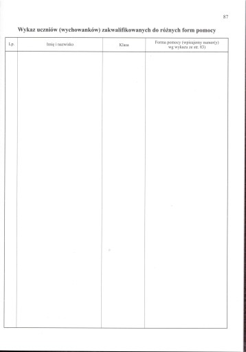- Wykaz uczniów (wychowanków) zakwalifikowanych do różnych form pomocy
