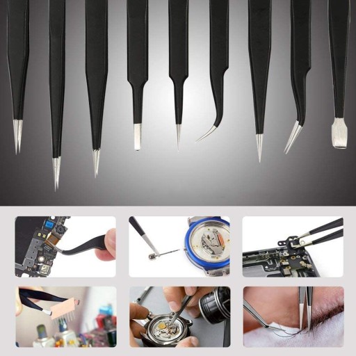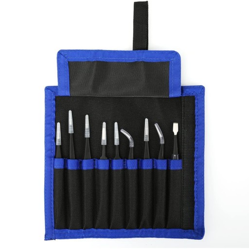 Zestaw 9 metalowych pincet ESD + etui!