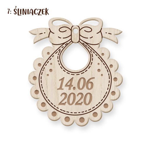 - śliniaczek: szer. 3,5 cm, wys. 4 cm