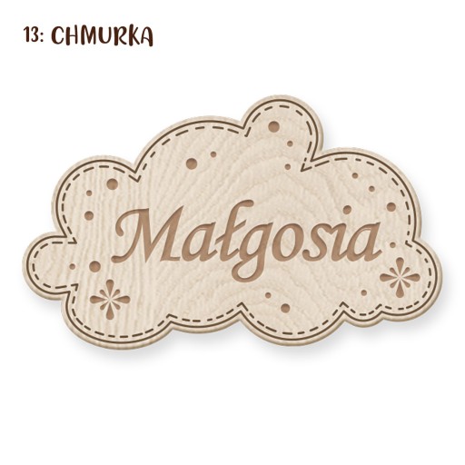 - wycinane imię: wys. 4 cm, szerokość zależna od długości imienia