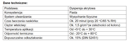 ✔️Nie zawierający rozpuszczalników jednoskładnikowy uszczelniacz na bazie dyspersji akrylowych w kolorach najpopularniejszych gatunków drewna.