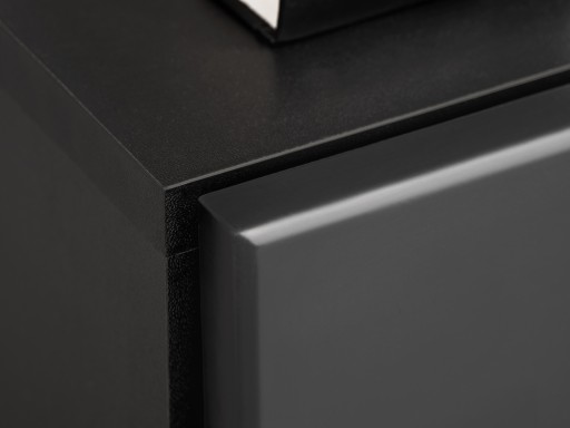 korpus: Perla Gray mat, czarny mat / front: czarny PVC, aplikacja: czarny biokominek elektryczny