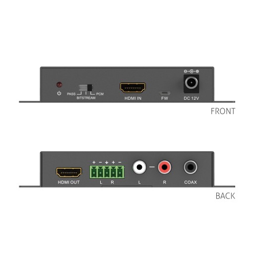 HDMI Audio Embedder 18 Gbps 4K (60Hz 4: 4: 4) z HDR Purelink PT-C-HDADE to ekstraktor audio HDMI2.0a z wieloma portami wydzielającymi dźwięk obsługujący pełną przepustowość HDMI dzięki czemu idealnie nadaje się do kina domowego i profesjonalnych instalacji. Przesyła obraz 18Gbps oraz umożliwia odseparowanie dźwięku z HDMI w formatach cyfrowych i analogowych.