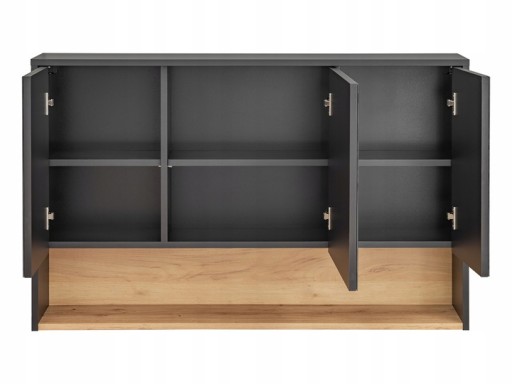 Szafka stojąca: u góry otwarta część, pod nią drzwi, za nią jedna półka, szafka RTV: po lewej klapa, za nią jedna komora. Półka.