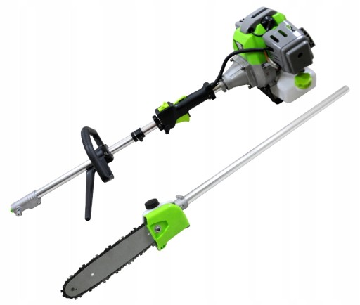 Przystawka do kosy spalinowej z piłą łańcuchową do cięcia gałęzi, krzewów, przycinania żywopłotów i wielu innych prac ogrodniczych.