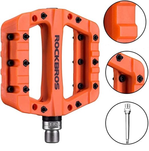 Pedały rowerowe ROCKBROS są wykonane z wysokiej jakości włókna nylonowego którego wytrzymałość jest porównywalna z metalowymi odpowiednikami. Dzięki zastosowaniu tego materiału pedały są również wyjątkowo lekkie. Osie tych pedałów rowerowych są wykonane ze stali Cr + MO, która jest trwała i lekka.