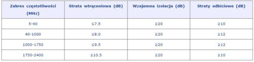 - współczynnik ekranowania: 5-2400MHz ≥100dB