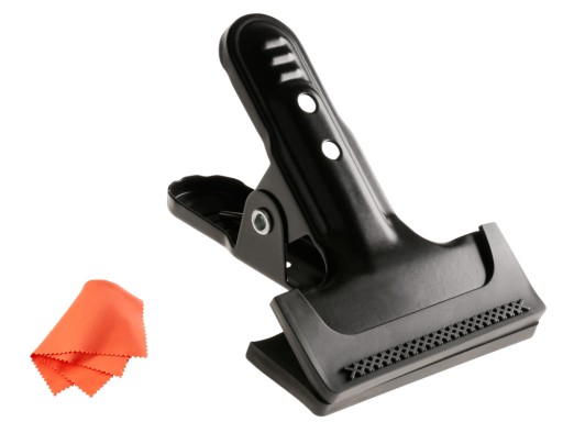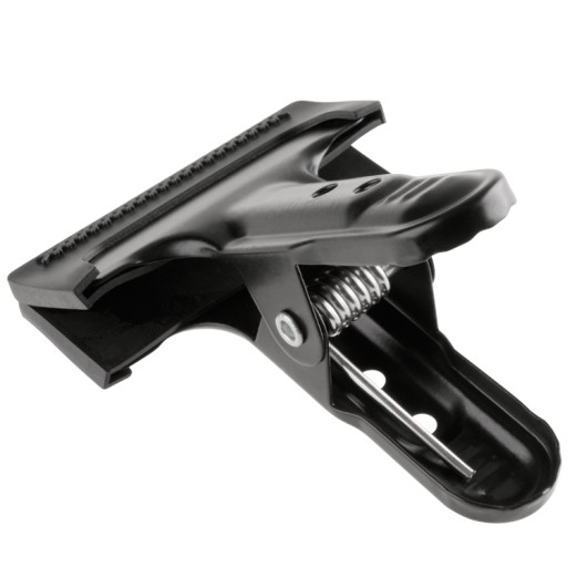 Uniwersalny metalowy klips fotograficzny. Niezbędny element każdego studia fotograficznego. Znajdzie zastosowanie przy mocowaniu tła, oświetlenia, przewodów lamp, element przytrzymujący blendę lub panel, jako element wyposażenia ciemni - tylko od Twojej kreatywności zależy jak go użyjesz. Gumowe nakładki na brzegach chronią powierzchnie do której zostaje przypięty klips. Mocna metalowa sprężyna i antypoślizgowe nakładki szczypiec zapewniają dużą przyczepność do powierzchni. Możesz przypiąć go na powierzchni grubości do 4,5 cm