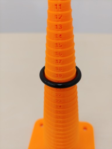 Stożek pomiarowy służący do pomiaru średnicy wewnętrznej pierścieni uszczelniających typu O-ring lub innych okrągłych uszczelek.